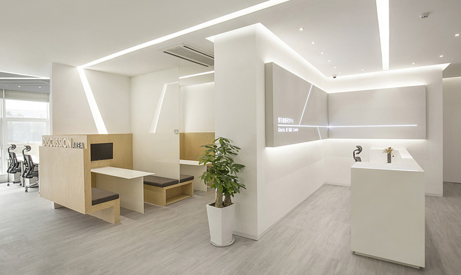 上海辦公室裝修公司案例:簡(jiǎn)約白作為全新的品牌色,代表著青春、創(chuàng)造力、活力和創(chuàng)新。線條作為主要元素被用在品牌logo和室內(nèi)設(shè)計(jì)中。